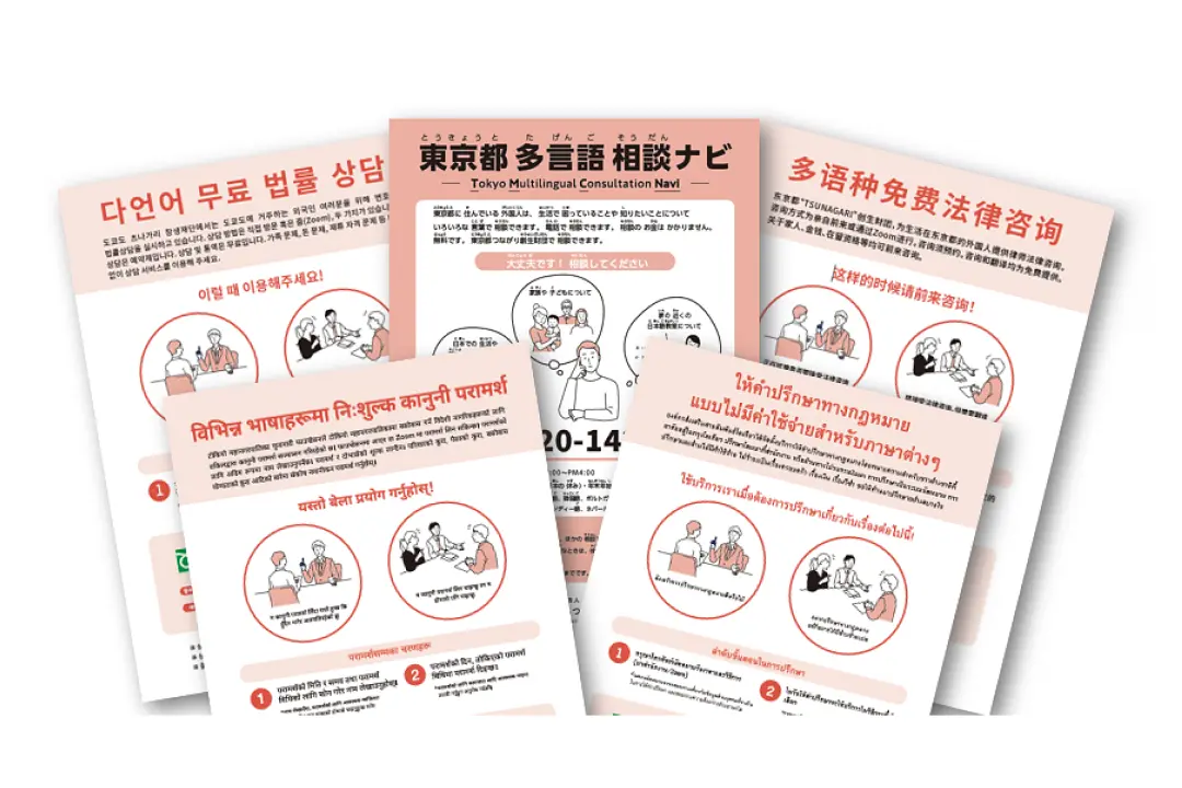 東京都多言語相談ナビ(TMC Navi)は、東京で暮らす外国人が日々の生活での困りごとを、さまざまな言語で相談できる電話相談窓口です。困りごとを整理し、適切な窓口へ案内する役目を担うことから、”ナビ”と表現しています。弁護士などの専門家と連携した事前予約制の専門相談も無料で実施しているほか、地域の窓口などでは対応が難しい場合の多言語による通訳サポートも行っています。